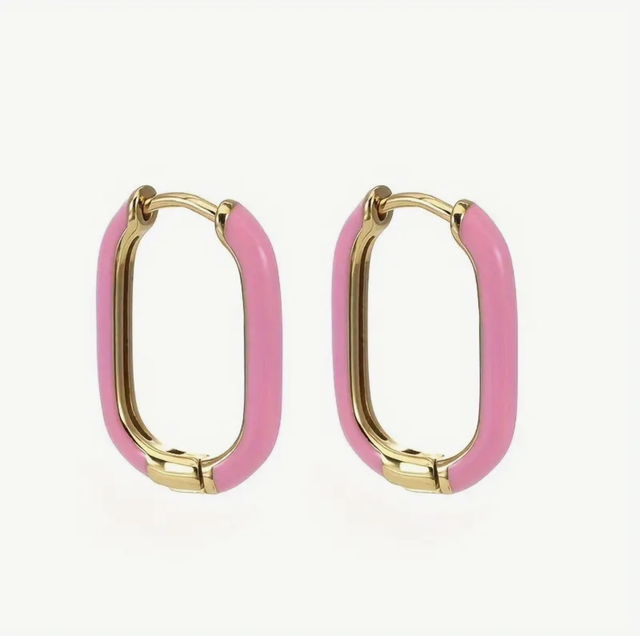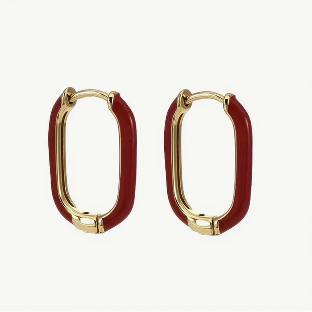 The elongated shape is similar to a rectangle with soft corners. The hoops appear coloured with a gold edge.