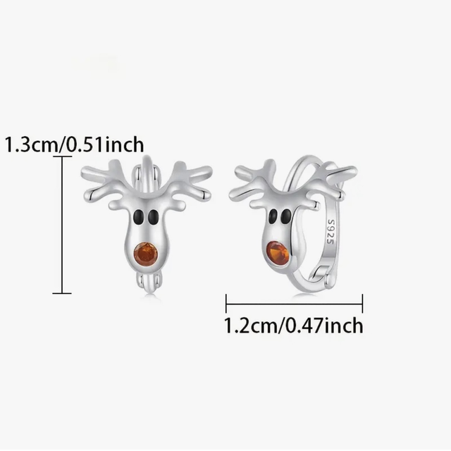 Sterling silver hoops in the likeness of a reindeer are inlaid with a red Zirconia nose. You could even say it glows.