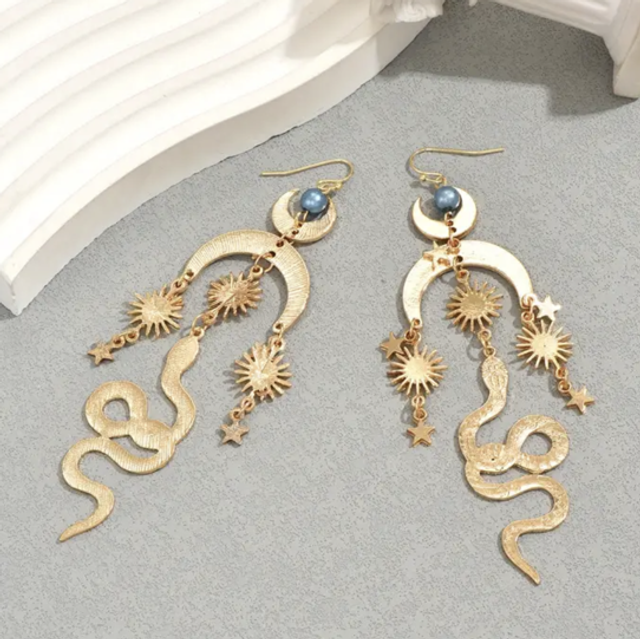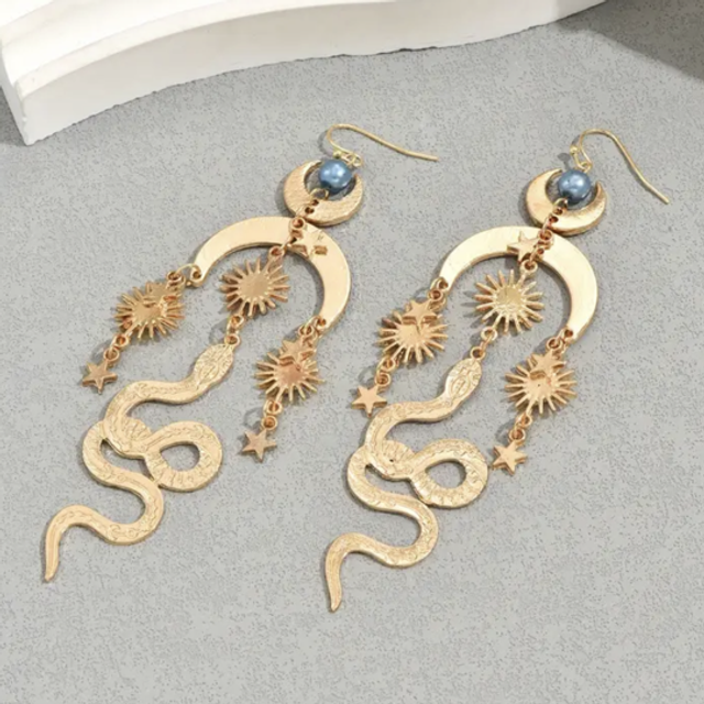 Featuring crescent moons, delicate stars, radiant suns and bold serpents with an engraved design — all in shimmering gold with a touch of pearl blue. Perfect for when you want your jewellery to turn heads.