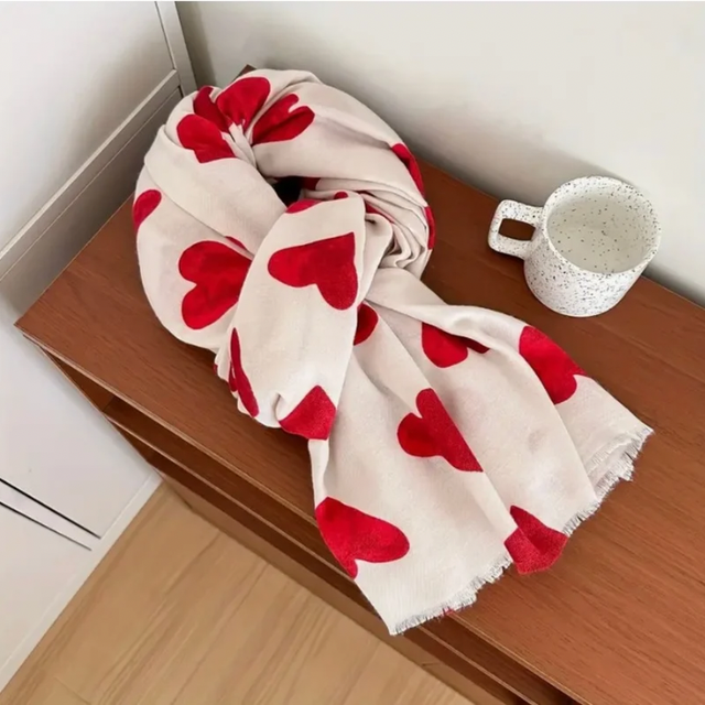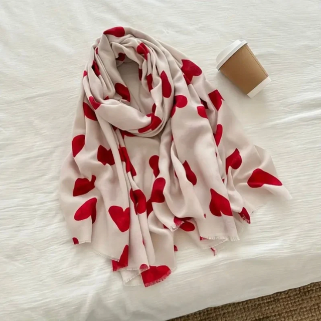 This Heart Print Scarf is a playful statement piece that adds instant charm to any outfit.