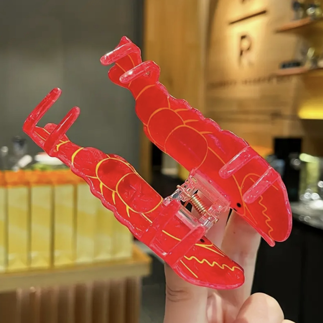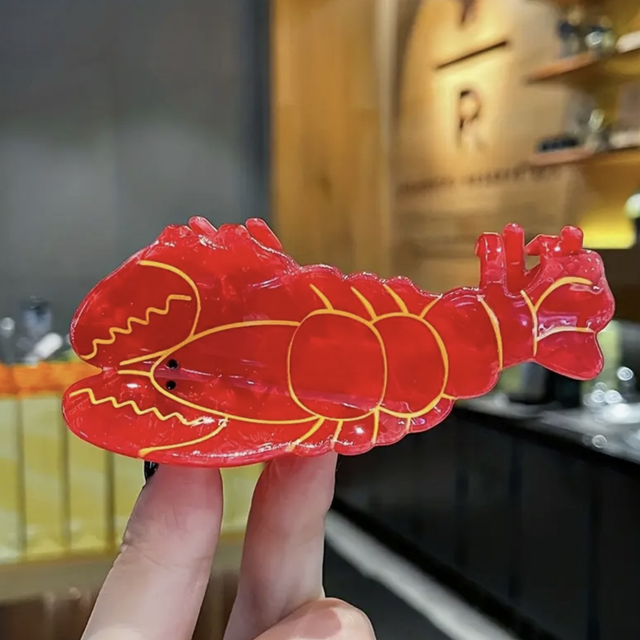 Add a fun twist to your hairstyle with this adorable red lobster hair clip.