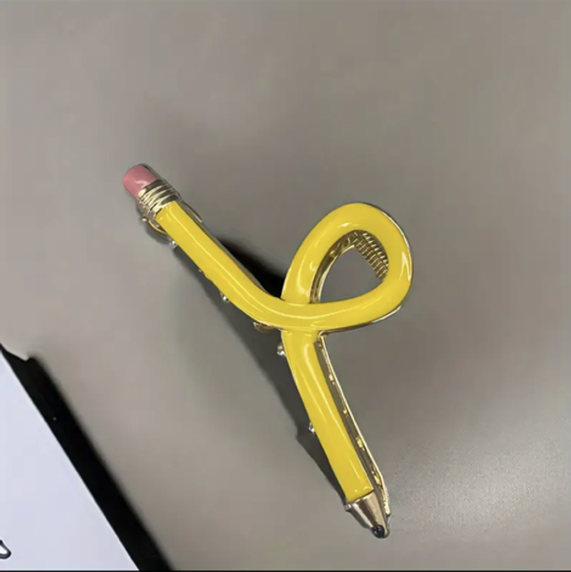 This cute yellow pencil-shaped hair claw clip is a fun accessory and the perfect gift for teachers, writers or artists!